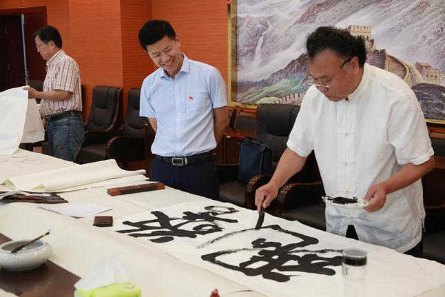 淮河文化源远流长,鱼米之乡粽飘香。为迎接党的九十九周年华诞,在端午佳节即将来临之际,2020年6月24日上午,应河南省淮滨县委宣传部、县文联邀请,信阳市文联主席、美术家协会主席殷丽带领书画名家傅泽宇、刘根禾、黄镛、沈峰、汪刚等市县书画名家一行10人,走近淮滨县公安局,开展“书画进警营、翰墨润警心”活动。活动前,淮滨县委书记曾辉,县委常委、政法委书记方军平,县委常委、宣传部长杨扬会见了殷丽一行。