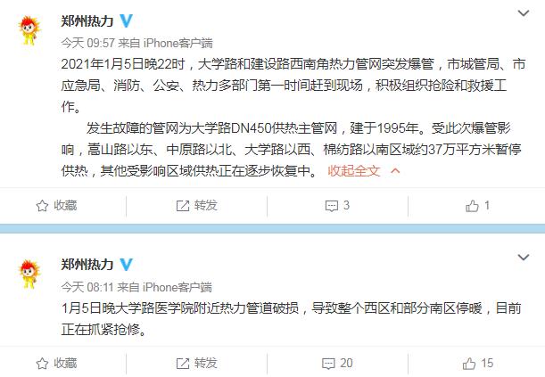 郑州市热力总公司官方微博截图