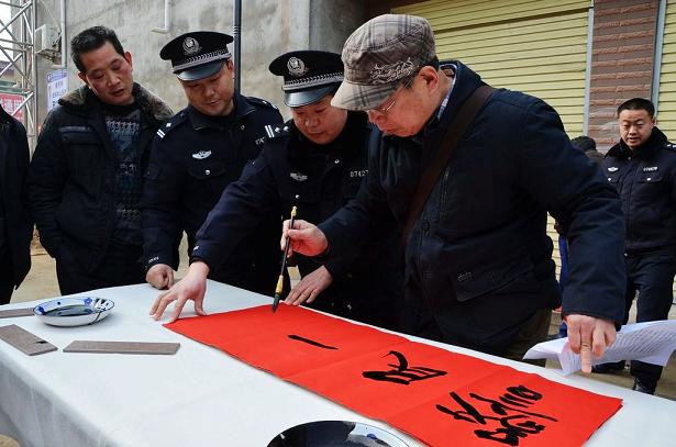 元月23日,河南省文联20多名书法家和摄影家应西平县焦庄乡金刚村农民朋友的邀请,冒严寒行程200公里从省会赶到当地,为农民朋友写春联、照全家福。并替当地派出所民警为农民书写送平安、送安全、送和谐春联600余幅。此举受到了当地群众的高度称赞。