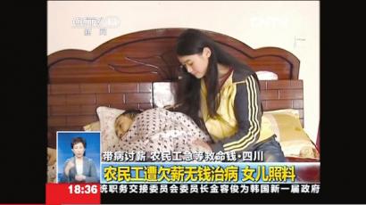爸爸患癌症治病花了10多万元,父母被拖欠的共五万多元工资成了救命钱。内江资中县17岁女孩陈瑶无奈发帖求助,帮爸爸讨工钱。最终,在央视关注报道后,当地政府部门用3天时间帮她了却心愿。一篇网帖引央视关注资中农民工讨薪