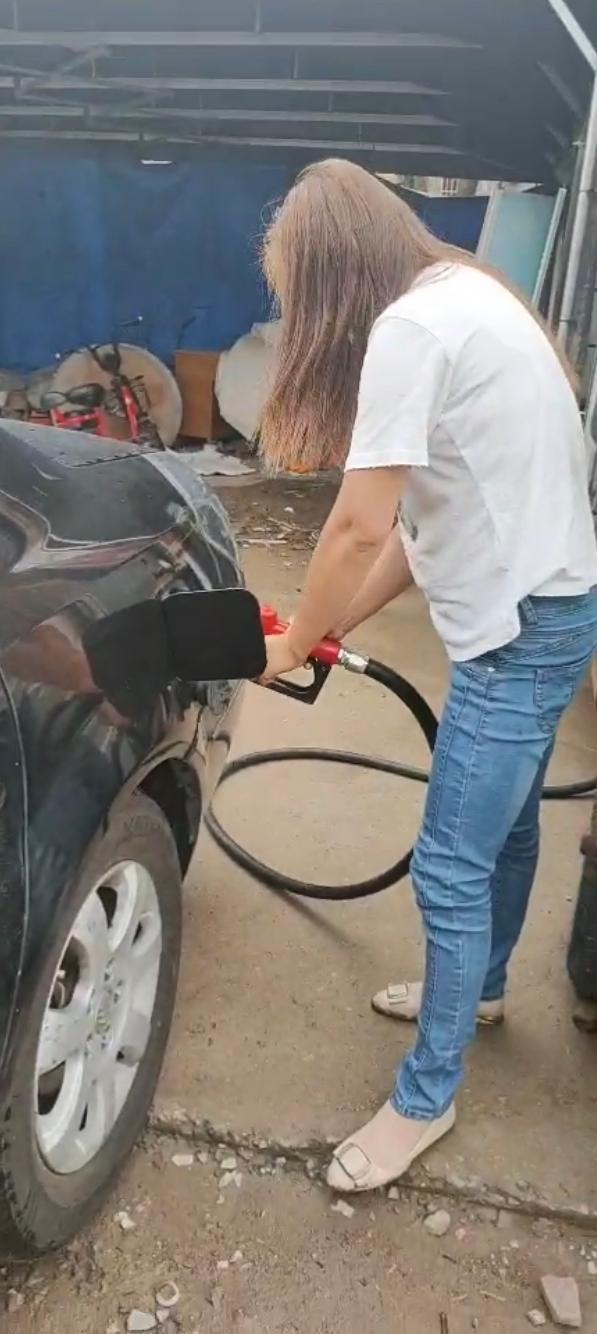 记者随同知情人一同来到项城市工业路北段。记者看到,道路旁边正停着一辆厢式货车,一名穿着灰色防晒衣,将面部遮挡得严严实实的男子,正手持加油枪为一辆黑色轿车加油。“这个非法加油车从今年春季就存在了,之前也举报过,但不知道为什么还存在。”知情人不解地说。