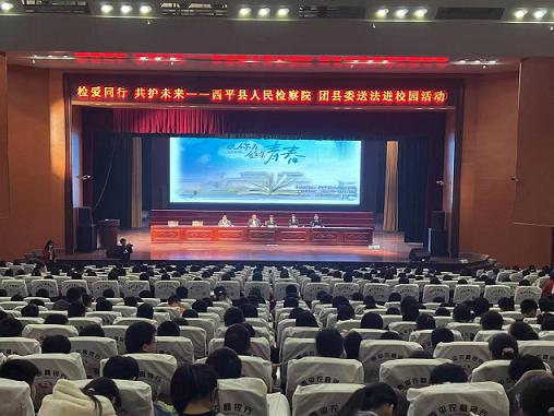 为深入贯彻落实习近平法治思想及最高人民检察院“一号检察建议”的精神,全面开展检察机关法治副校长送法进校园活动,从源头上预防和减少在校学生违法犯罪现象的发生,有效促进平安校园建设,西平县人民检察院联合团县委走进西平六中,为师生们送去了一场精彩的法治盛宴。西平六中副校长赵海霞、西平县人民检察院第五检察部主任常方方,第三检察部主任刘淑红、共青团西平县委副书记杨庚泽及团县委副书记、县人民检察院第一检察部副主任李汉鑫出席活动。